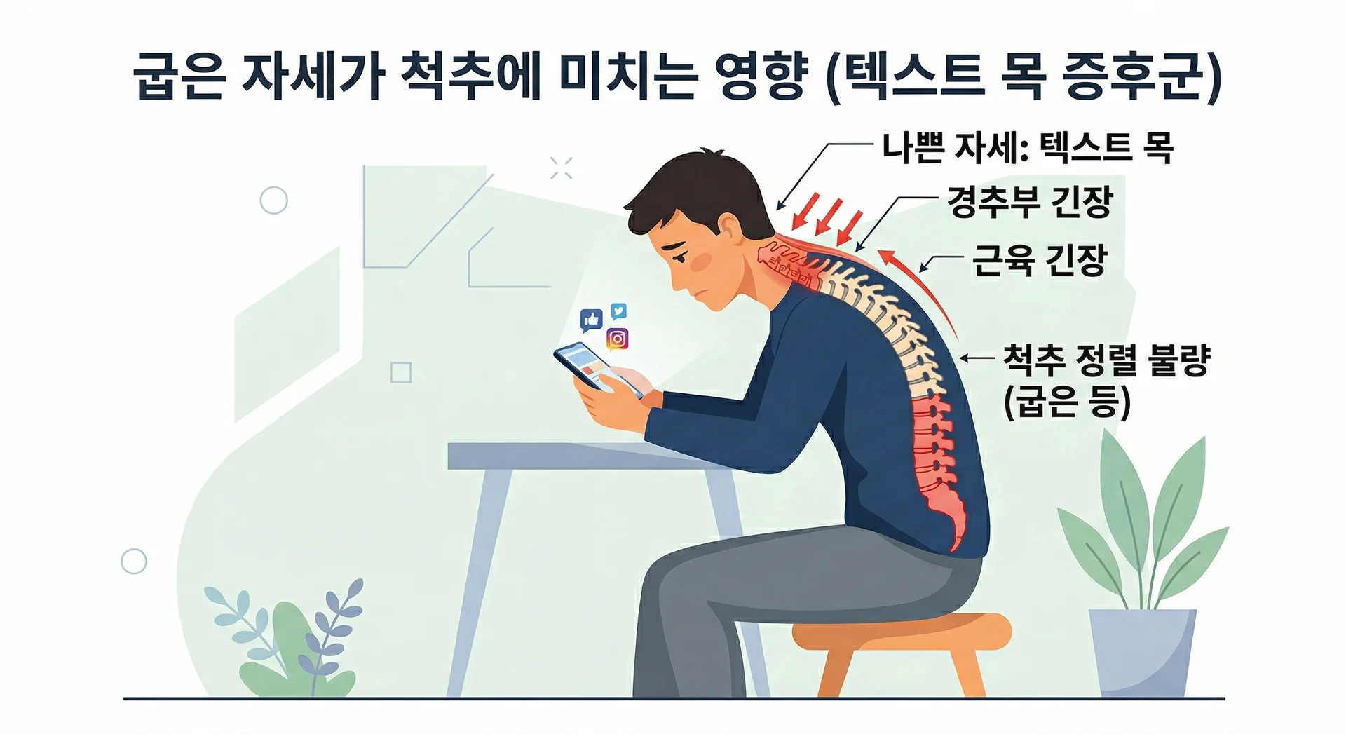 특히 스마트폰을 볼 때 고개를 앞으로 내밀거나